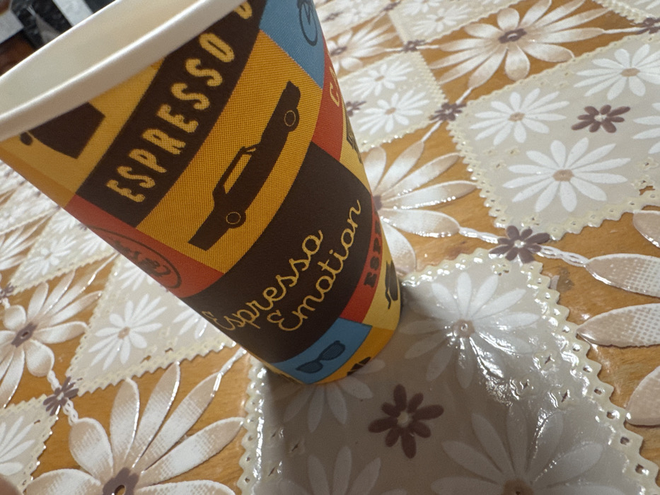- "A disposable paper coffee cup is depicted resting on a patterned surface in Pleven, Bulgaria" by FM-qBSgX2, licensed under CC BY 4.0