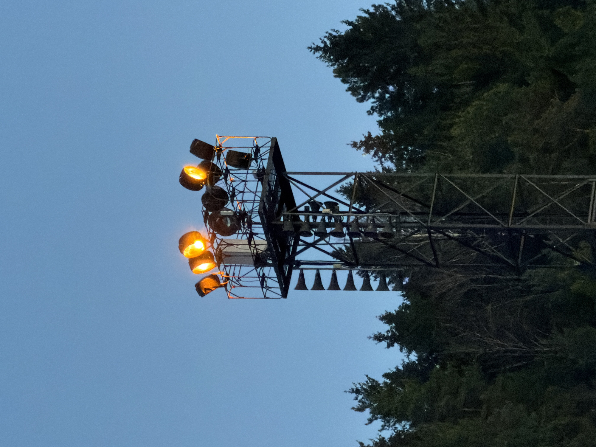 floodlight tower against a dusk sky
