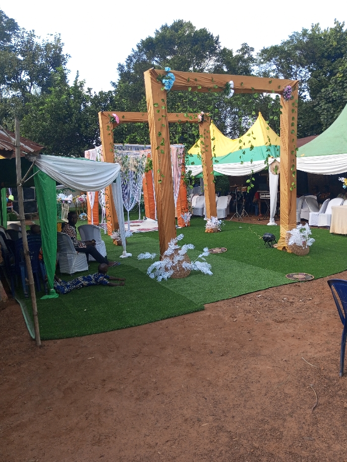 In Amokvo, Nigeria, an outdoor event setup is observed under daylight conditions