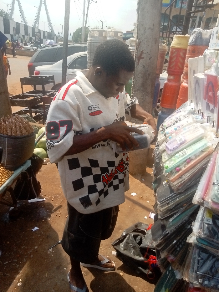 The image captures an outdoor commercial scene in Egbagu, Nigeria