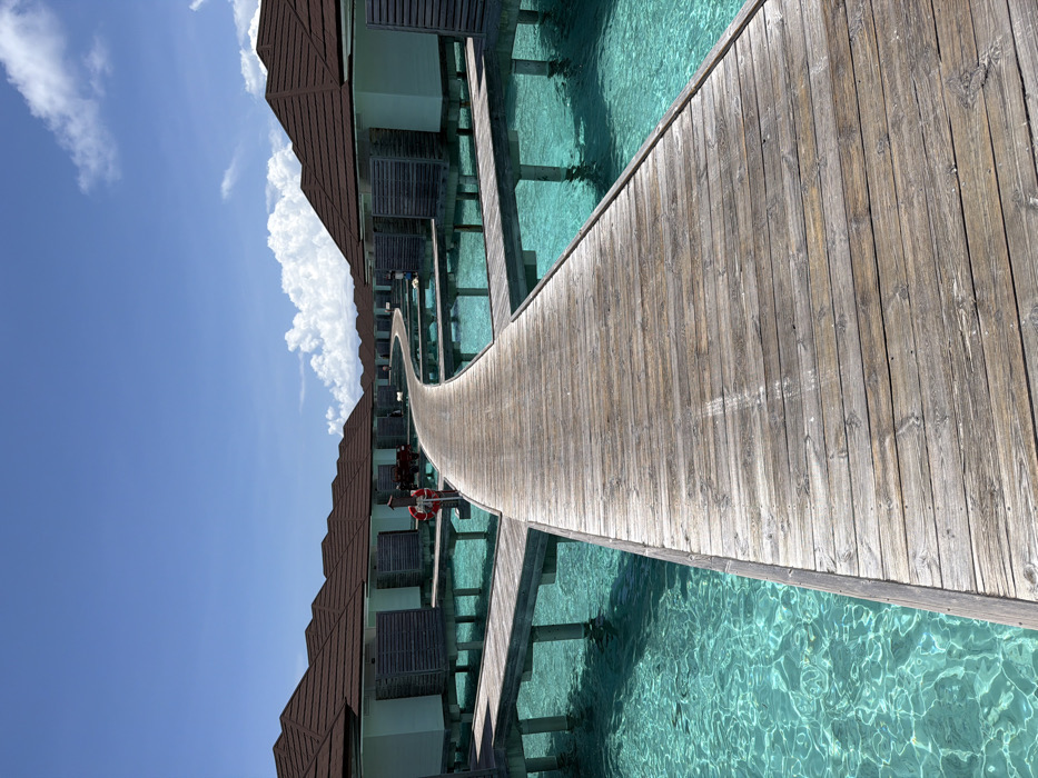 - "The image displays an extensive resort area featuring overwater bungalows under a clear blue sky with scattered white cumulus clouds" by FM-RjPGA3, licensed under CC BY 4.0