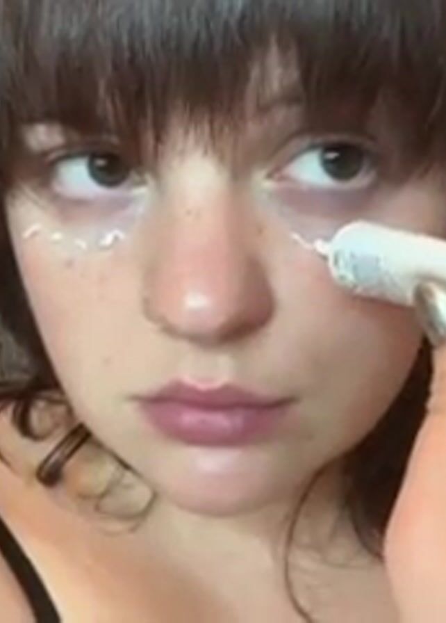- "A woman with short brown hair and bangs is applying a white cream to the skin under her left eye from a white tube" by FM-IdNfF2, licensed under CC BY 4.0