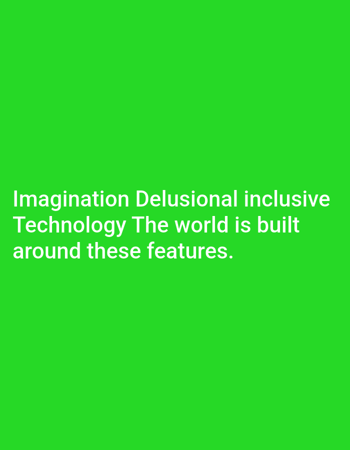 The image displays white text against a solid green background. The text is centered horizontally in the lower half of the frame and reads: "Imagination Delusional inclusive Technology The world is built around these features." There are no individuals, objects, or environmental features depicted other than the text and the monochromatic background. The scene is located in the city of Kajola, Nigeria.