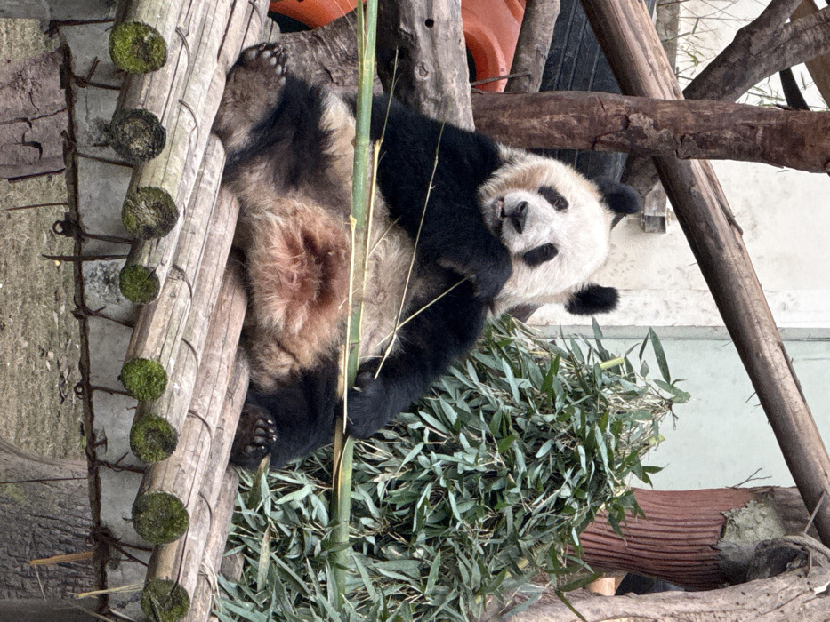 - "A panda rests upside down amidst branches and bamboo" by FM-K0Kp62, licensed under CC BY 4.0