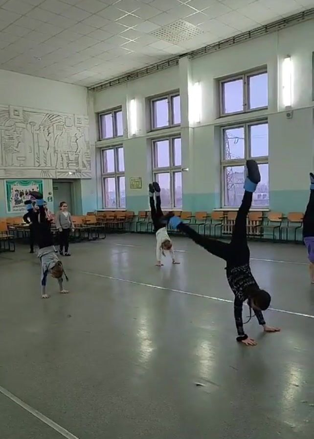 - "several young girls practicing cartwheels in a large indoor room with a polished gray floor" by FM-9vPRQ2, licensed under CC BY 4.0