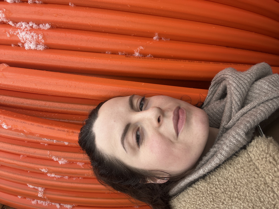 - "A female subject is depicted outdoors in Becherbach, Germany, positioned in front of a large, vertically stacked coil of bright orange corrugated pipes" by FM-4GKkh1, licensed under CC BY 4.0