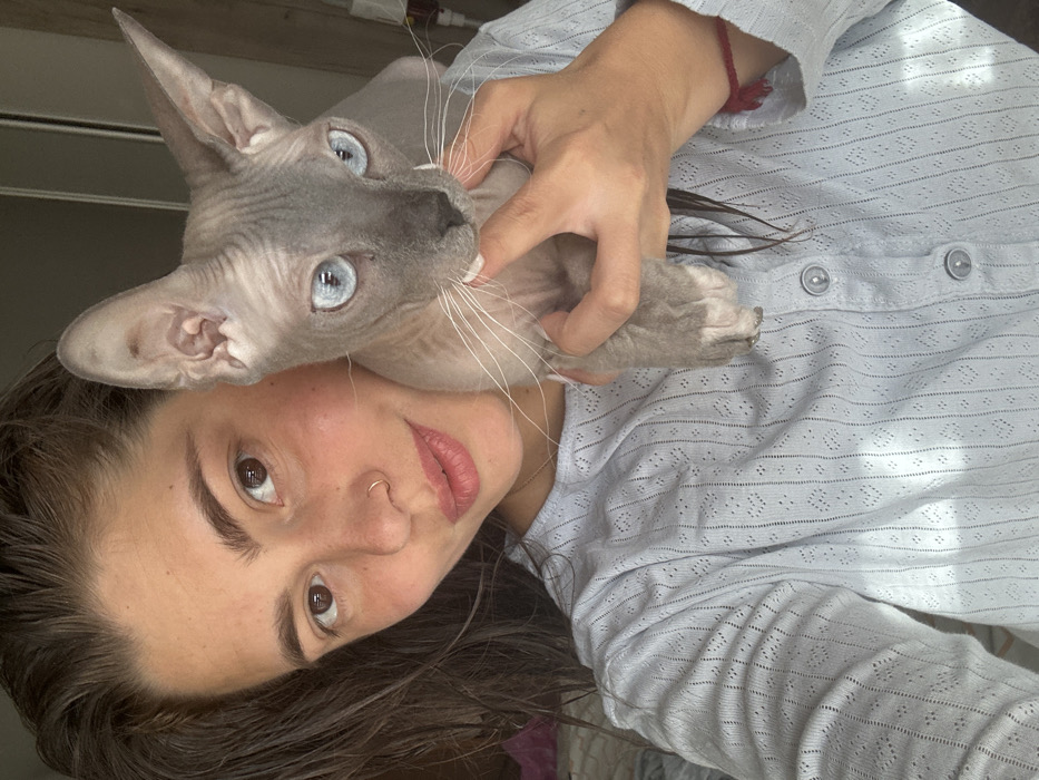 - "The image depicts a female individual holding a Sphynx cat in an indoor setting within the city of Chaikovsky, Russia" by FM-zBr6u2, licensed under CC BY 4.0