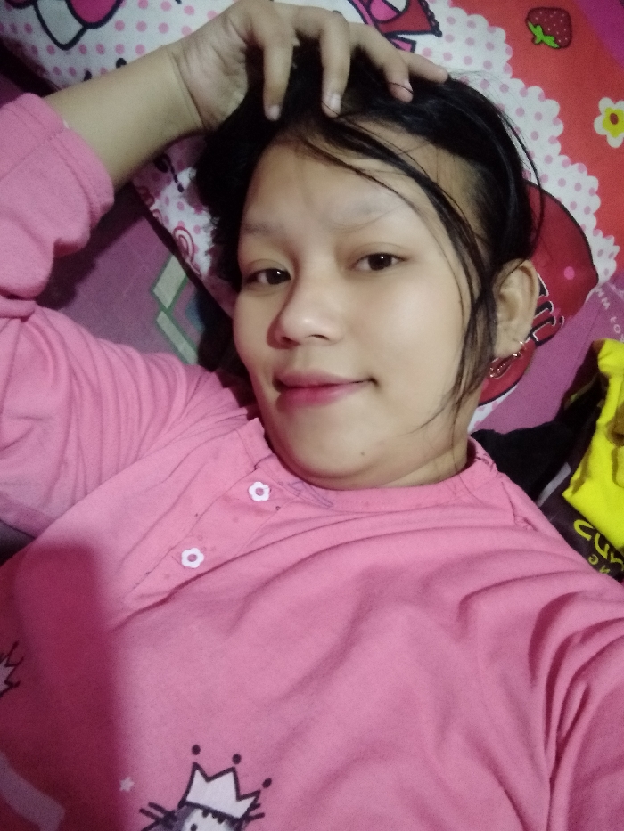 - "A woman in a pink, buttoned pajama top lies on a bed with a patterned pillow" by FM-kh49F3, licensed under CC BY 4.0