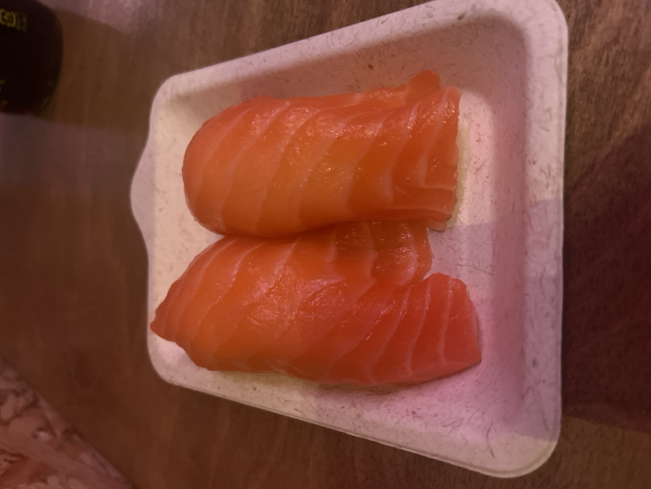 - "Two pieces of fresh salmon are stacked in a small, light-colored, rectangular tray" by FM-EBxyC2, licensed under CC BY 4.0