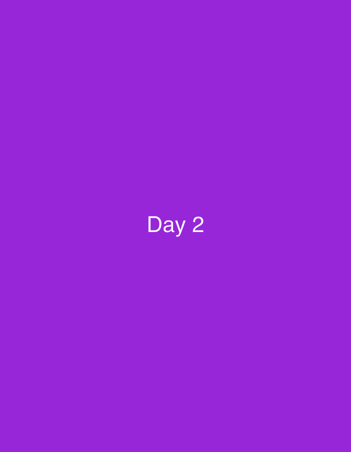 The image displays a uniform, solid purple background. Centered horizontally and vertically on this background is the text "Day 2" rendered in white, sans-serif font. No individuals, physical objects, actions, interactions, or discernible real-world environment are depicted. The image contains no visual information to identify a geographical location, including any specific city such as Niš, Serbia.