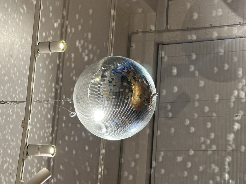 - "The image depicts an indoor scene in Melbourne, Australia, centered on a large, silver disco ball suspended from a white ceiling" by FM-P0ePn2, licensed under CC BY 4.0