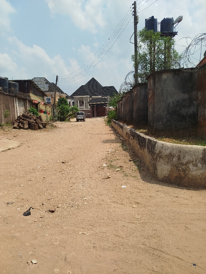 - "The image displays an unpaved, light brown dirt road in Umuode, Nigeria, under a sky with scattered white clouds" by FM-rw35x1, licensed under CC BY 4.0