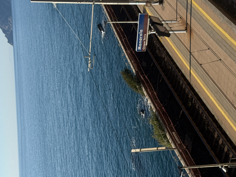 - "The image depicts a static, high-angle view of a coastal railway station platform and tracks in Manarola, Cinque Terre, Italy" by FM-yjK1X2, licensed under CC BY 4.0