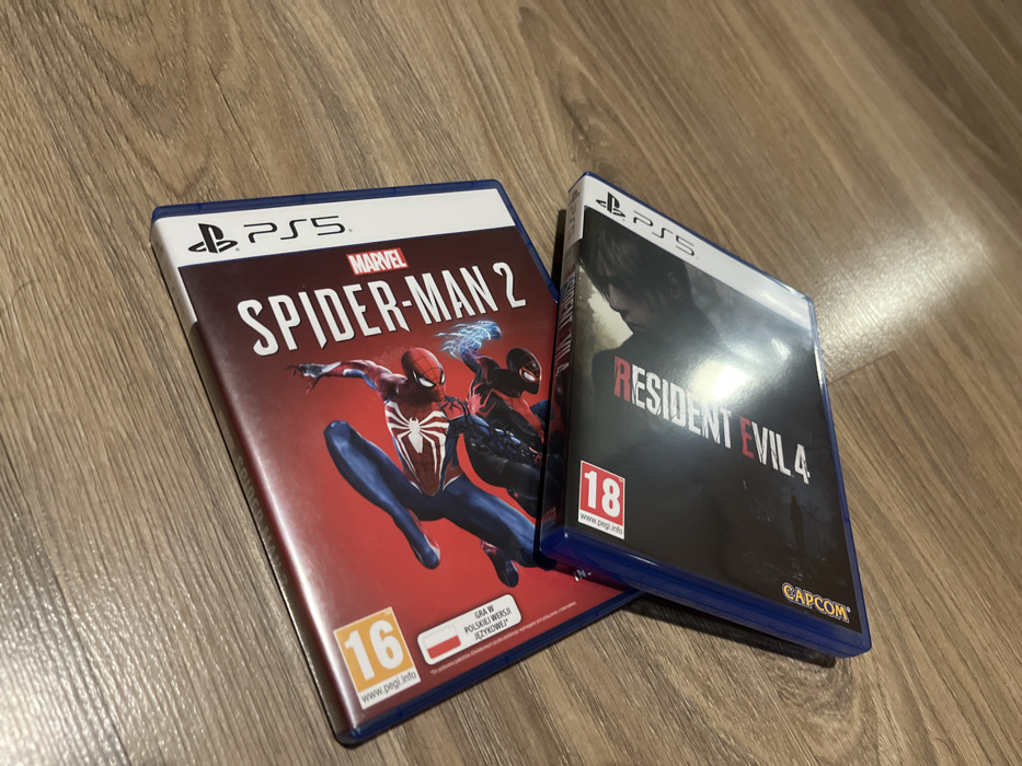 - "The image displays two PlayStation 5 game cases positioned on a light brown wooden floor or surface within an indoor setting in Radomir, Bulgaria" by FM-EdFdI3, licensed under CC BY 4.0