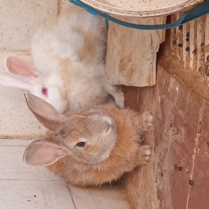 - "An indoor scene in Sabon Tasha, Nigeria, depicts two domestic rabbits within an enclosure" by FM-5caGl1, licensed under CC BY 4.0