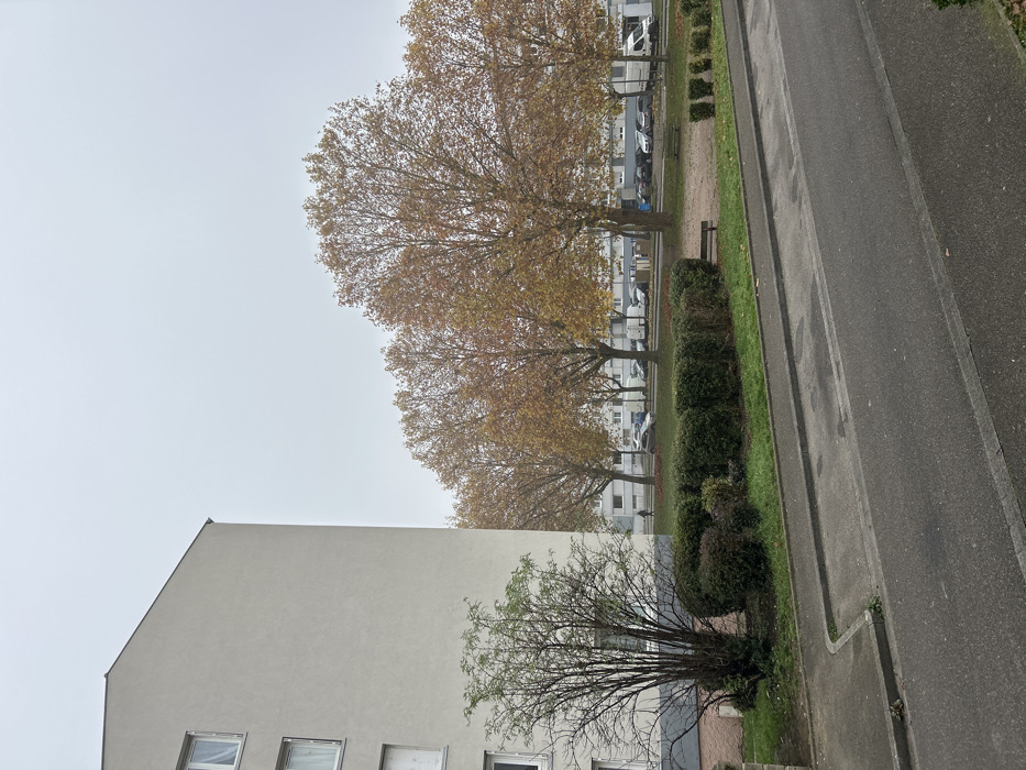 This image captures an overcast autumn day in a residential area of Strasbourg, France