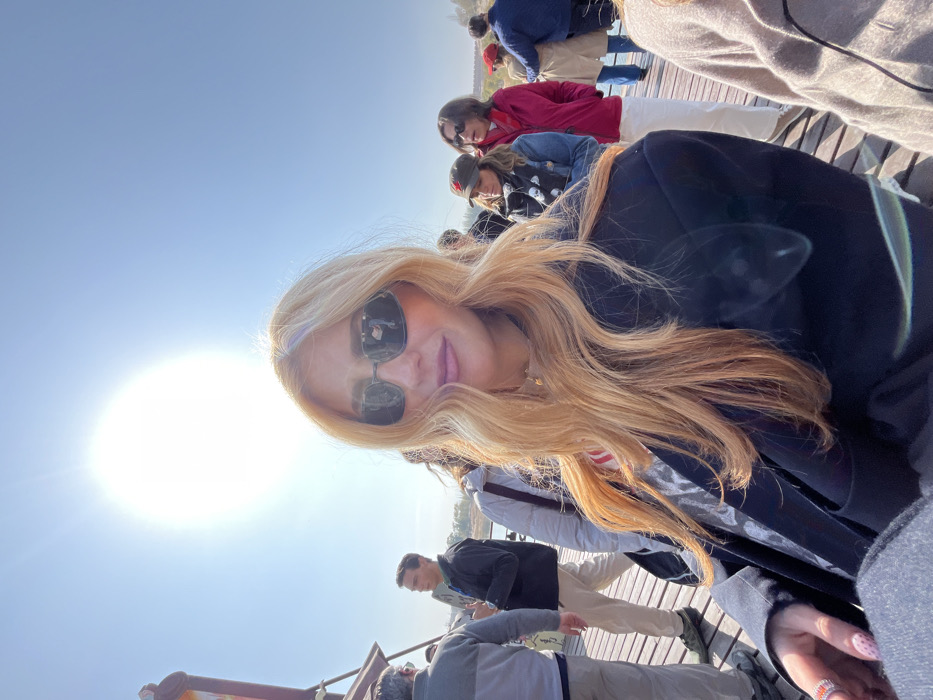 - "A fair-skinned female with long, wavy, light reddish-blonde hair and dark sunglasses is positioned in the foreground, looking directly at the camera with a slight smile" by FM-VYYYD2, licensed under CC BY 4.0
