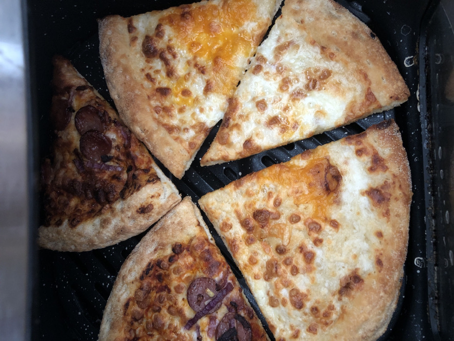 - "Five pizza slices are arranged in a circular pattern on a black, slotted surface" by FM-kQyTu2, licensed under CC BY 4.0