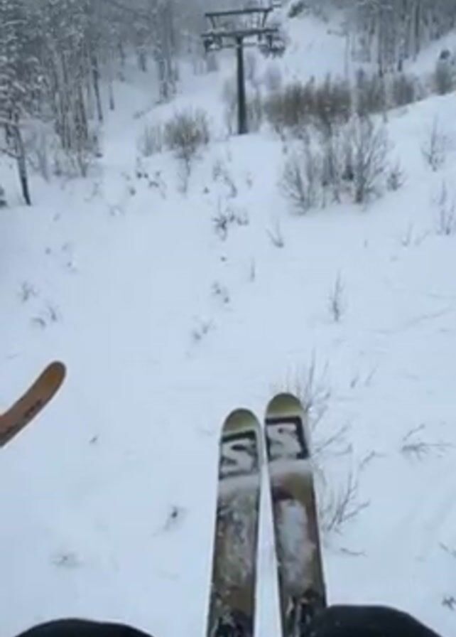 first-person perspective from a ski lift ascending a snowy mountain
