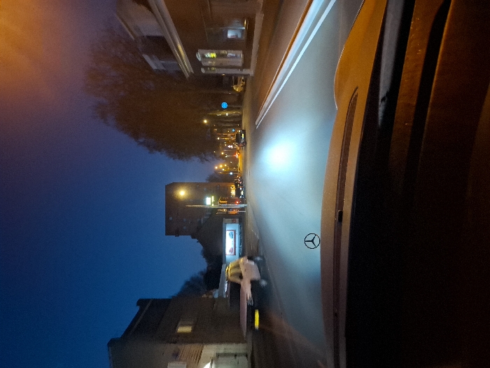 - "The image presents a nighttime urban street scene in Tilburg, Netherlands, captured from the perspective of a vehicle, identifiable as a Mercedes-Benz by its hood ornament centered on the dashboard" by FM-RADEm2, licensed under CC BY 4.0