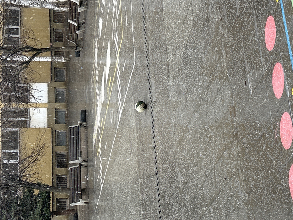 - "The image depicts an outdoor paved courtyard or playground in Sofia, Bulgaria, experiencing light precipitation, appearing as numerous white specks against a wet, dark gray ground" by FM-N0UvN2, licensed under CC BY 4.0