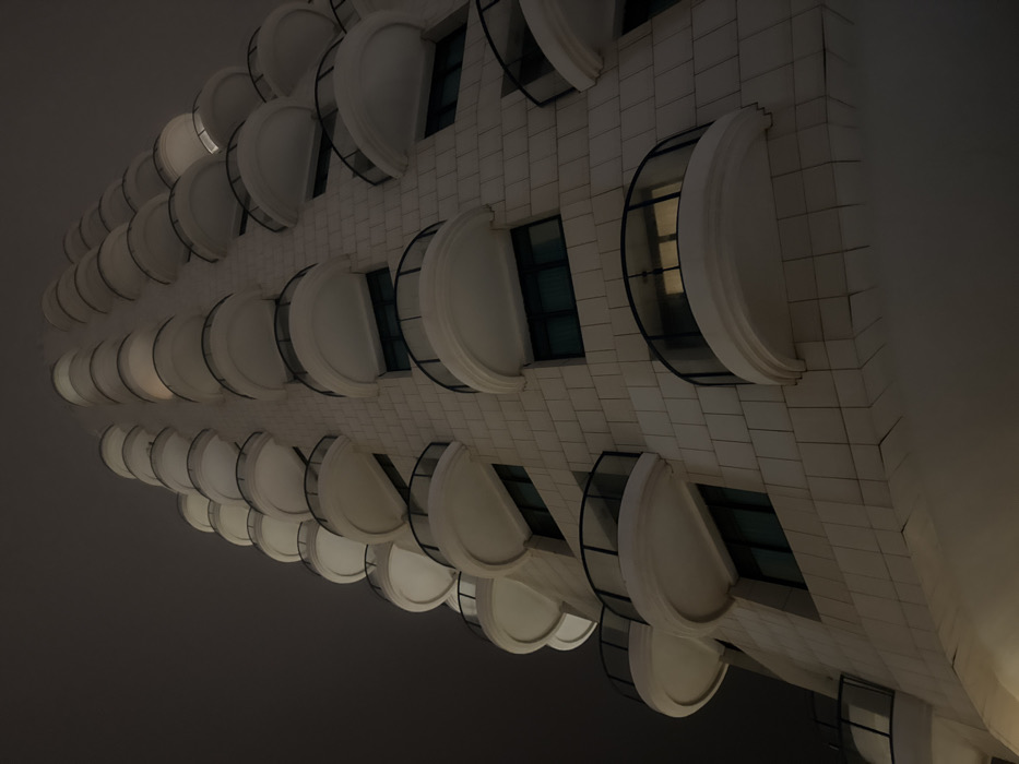 - "The image displays a tall, modern building in the city of Al Jizah, Jordan, viewed from a low angle at night" by FM-R3Pxn2, licensed under CC BY 4.0