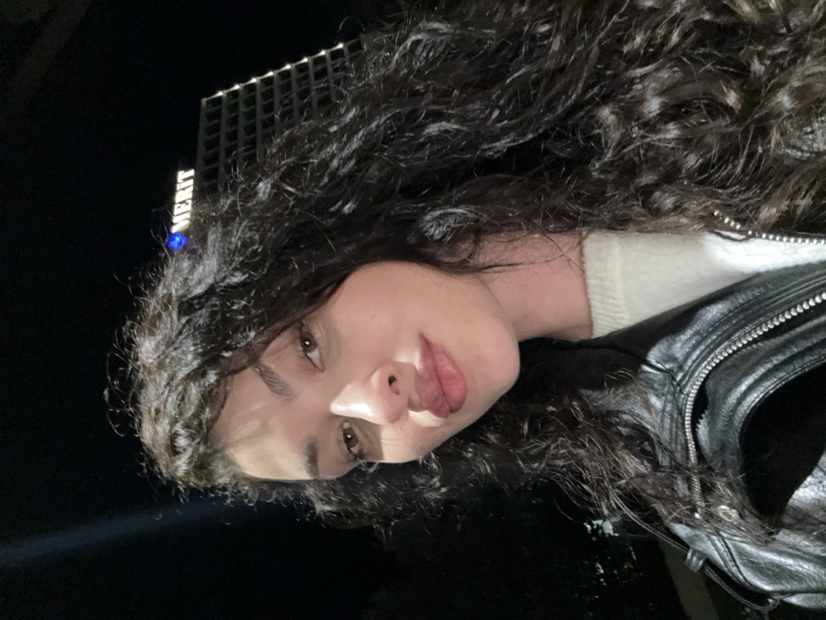 - "A woman with curly dark hair poses in front of a tall, illuminated building at night" by FM-eoAbI3, licensed under CC BY 4.0