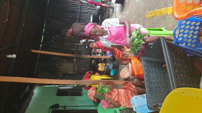 - "The image captures an indoor communal food preparation area in Nkpor, Nigeria, characterized by corrugated metal walls, a light green painted wall, and a dark ceiling with a single exposed incandescent light bulb" by FM-aBhOo2, licensed under CC BY 4.0