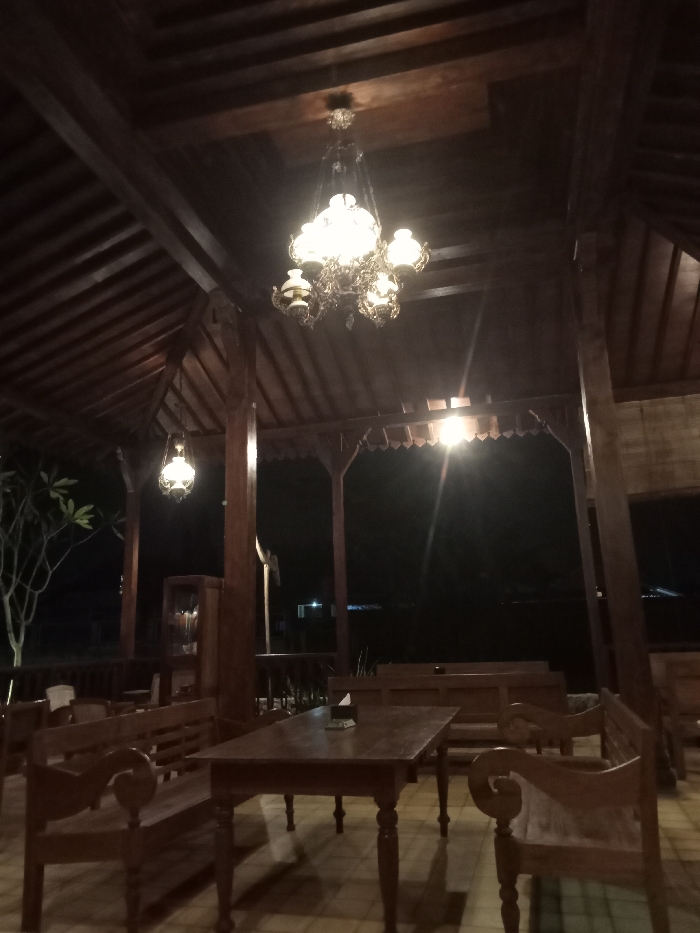 - "The image displays an unoccupied, warmly lit, open-sided traditional wooden pavilion at night in Margorejo, Indonesia" by FM-5geVz2, licensed under CC BY 4.0
