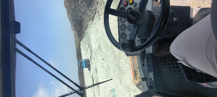 - "The image depicts a first-person view from the interior of a heavy construction vehicle, looking out through the windshield on a bright, sunny day" by FM-NFgjz2, licensed under CC BY 4.0