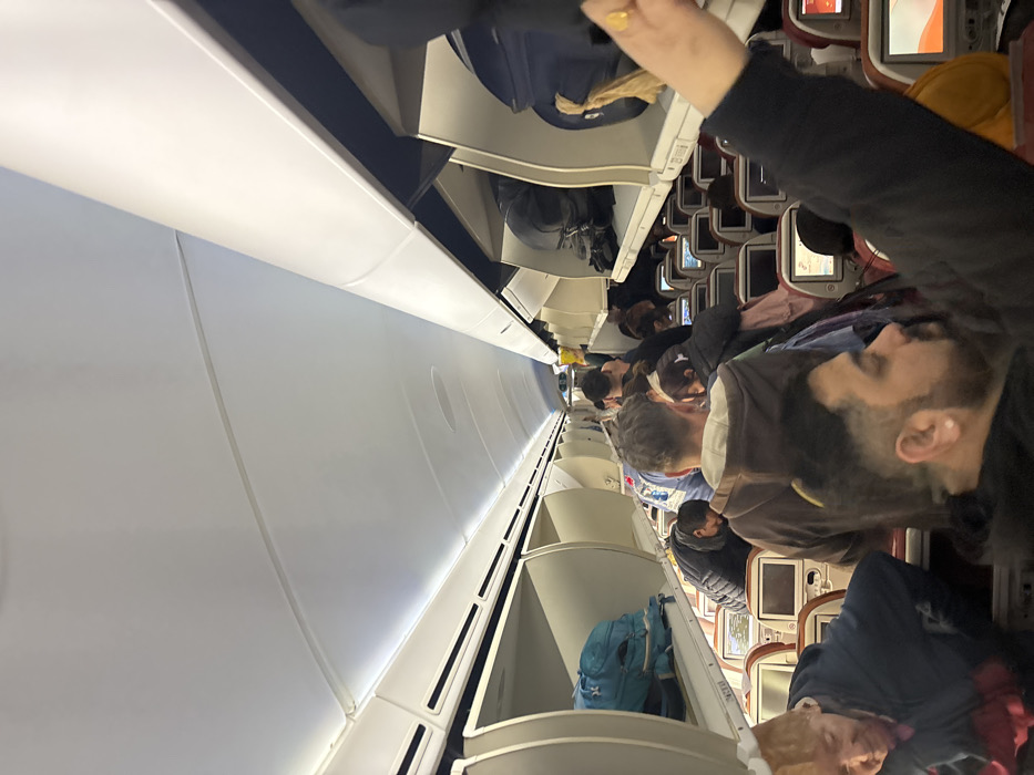 - "The image displays the interior of a commercial aircraft cabin, observed from the aisle, likely at Charles de Gaulle Airport in Tremblay-en-France, France" by FM-reQ1G2, licensed under CC BY 4.0