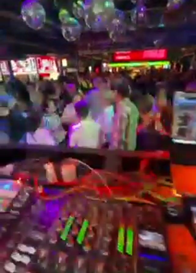 DJ setup at a crowded nightclub