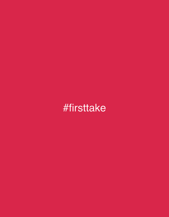 The image is a solid, vibrant red background. Centered horizontally and vertically is the text "#firsttake" in a simple, sans-serif white font. The text is the focal point, standing out against the bold red color. The image's overall impression is simple, clean, and attention-grabbing due to the contrast and color choice.