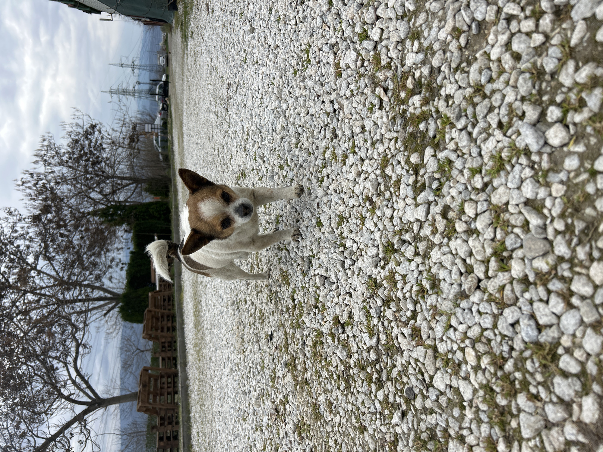 - "A small dog stands on a gravel surface with sparse vegetation" by FM-GmPmv1, licensed under CC BY 4.0