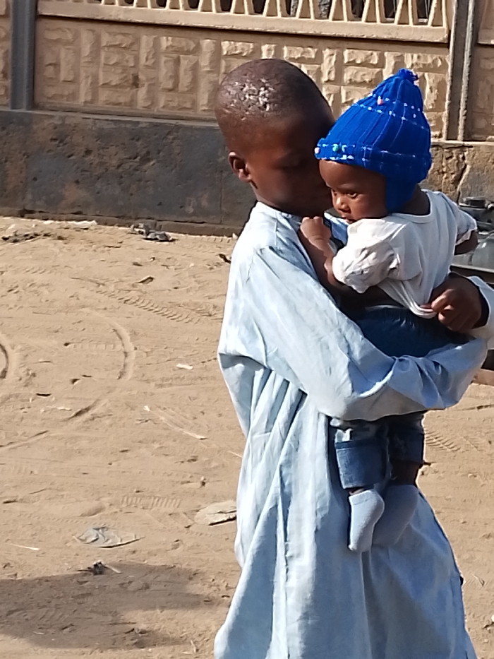 - "A young boy carries a baby outside" by FM-8iMFj1, licensed under CC BY 4.0