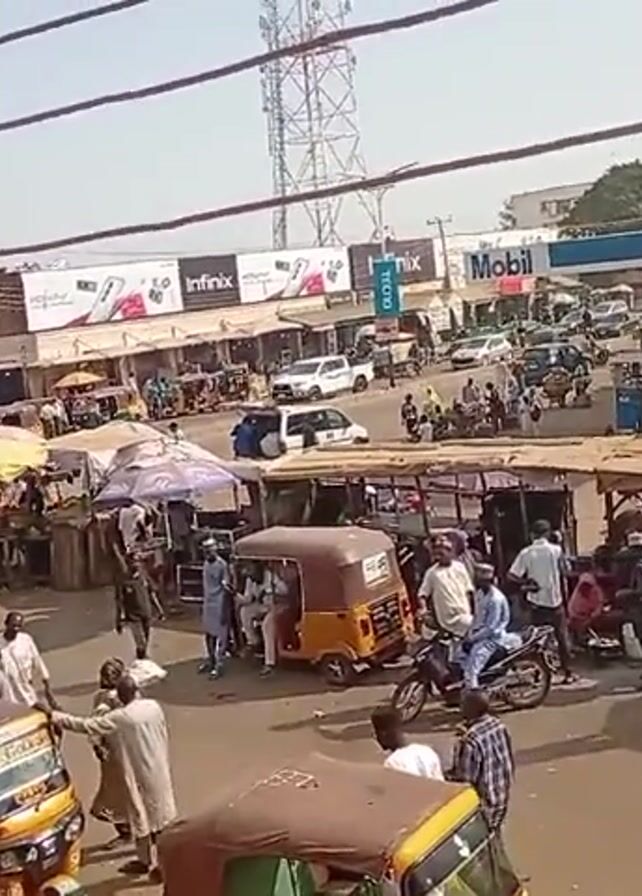 busy street scene, possibly in an urban area of an African country