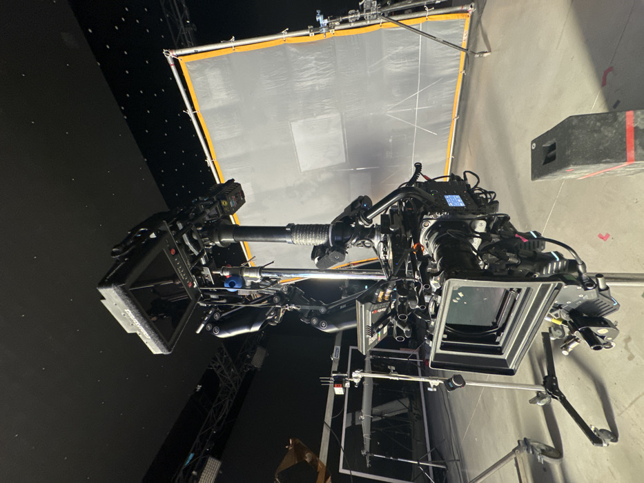 The scene depicts a professional film production setup within an indoor studio environment in Unknown, Unknown