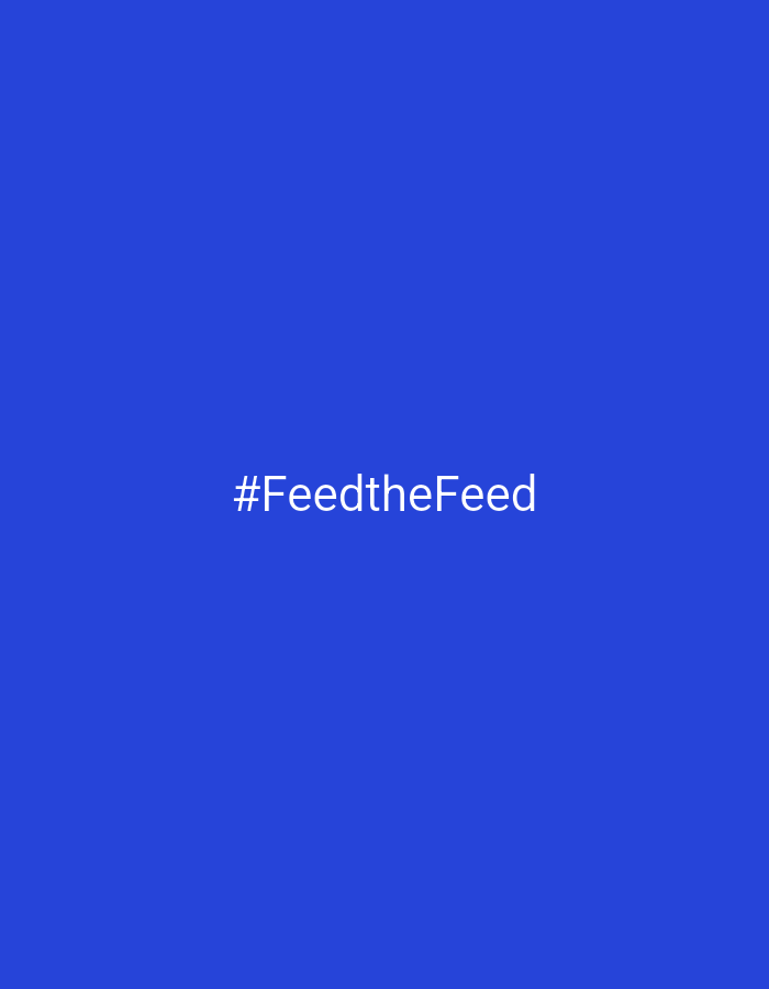 The image displays a solid, uniform royal blue background. Centered horizontally and vertically within this blue field is white text, which reads "#FeedtheFeed". There are no discernible people, subjects, objects, actions, interactions, or environmental features present in the image. The image provides no visual information to determine a specific location within the city of Sliven, Bulgaria, or any geographic location.