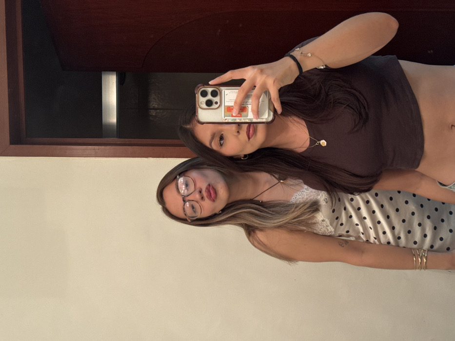 Two young adult females are depicted indoors in what appears to be a mirror selfie, located in Heroica Puebla de Zaragoza, Mexico