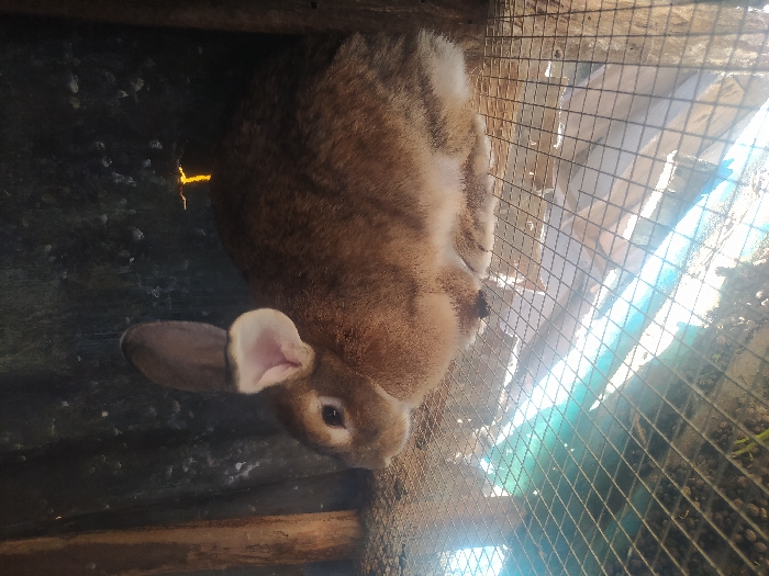 - "A single brown rabbit is seated on a dark metallic wire mesh floor, facing left within an enclosure" by FM-5B8Qh1, licensed under CC BY 4.0