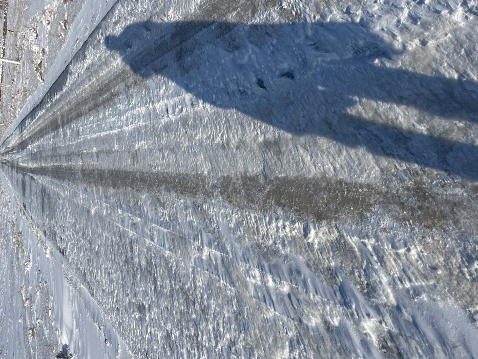 - "An upward-angled view captures an icy, snow-covered dirt or gravel road in Qoraobdol QFY, Uzbekistan, under clear, sunny conditions" by FM-YfprI2, licensed under CC BY 4.0