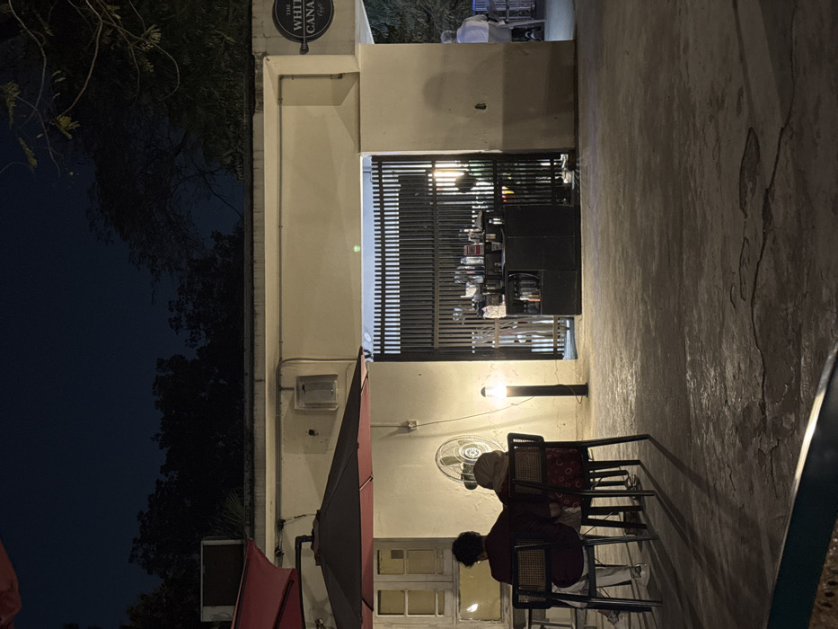 - "The image displays a nighttime scene at The White Canary Cafe in Banani, Dhaka, Bangladesh, viewed from an outdoor patio" by FM-Infr12, licensed under CC BY 4.0