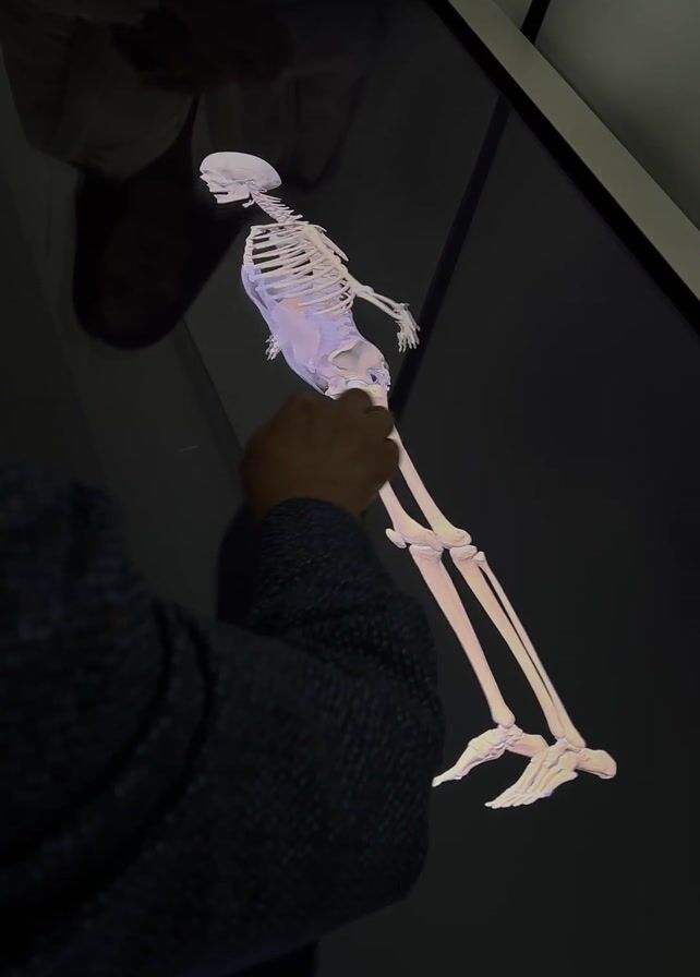 - "A man in a dark blue patterned blazer is using a touchscreen to manipulate a 3D rendering of a human skeleton" by FM-Vachv2, licensed under CC BY 4.0