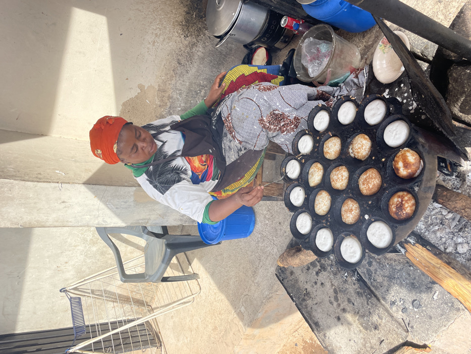 A woman is seated outdoors in Jos, Nigeria, engaged in cooking