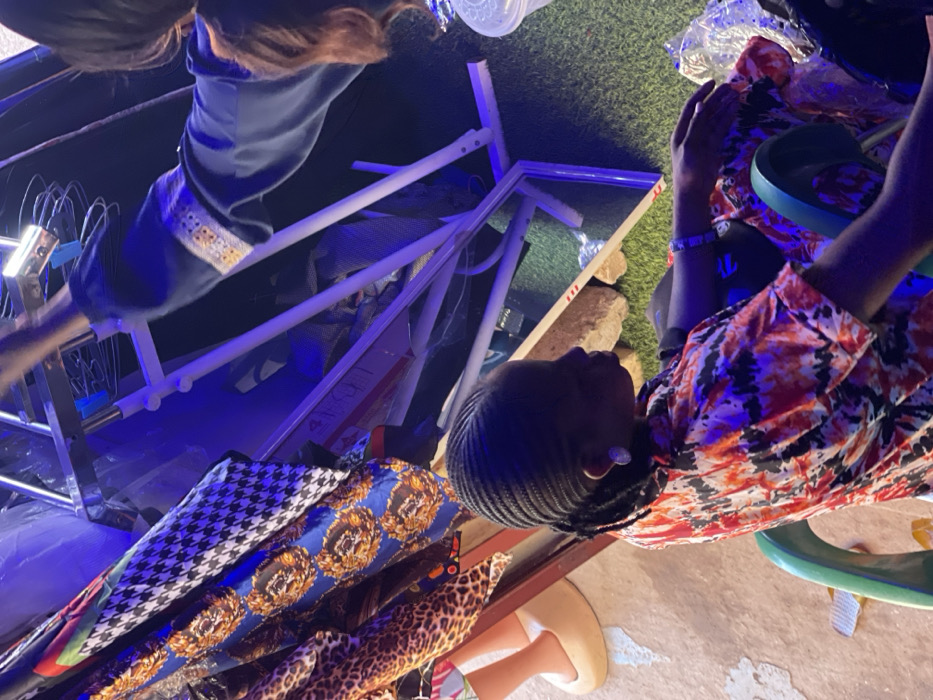 This image captures a retail or market environment in Samaru, Nigeria, characterized by predominant blue ambient lighting