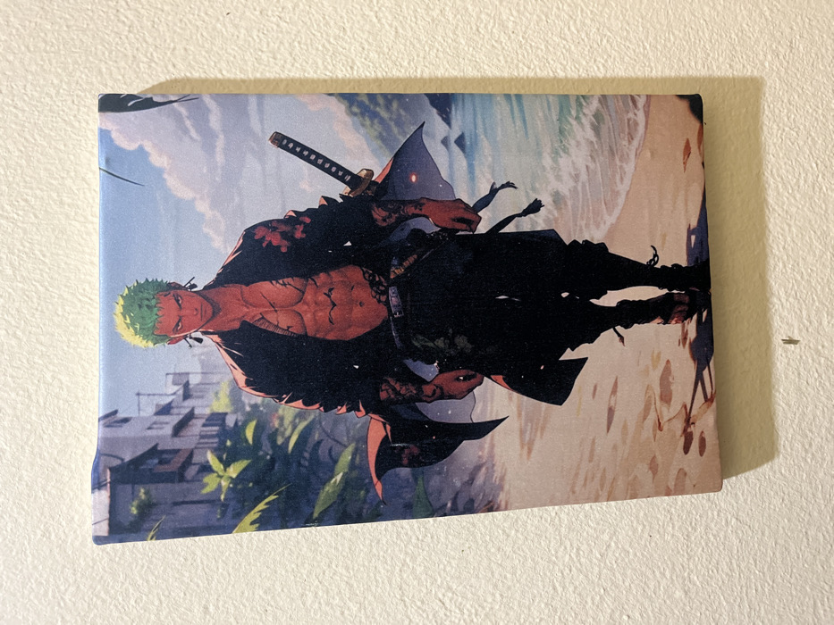 - "horizontally oriented canvas print featuring Roronoa Zoro from One Piece" by FM-r0AGi2, licensed under CC BY 4.0