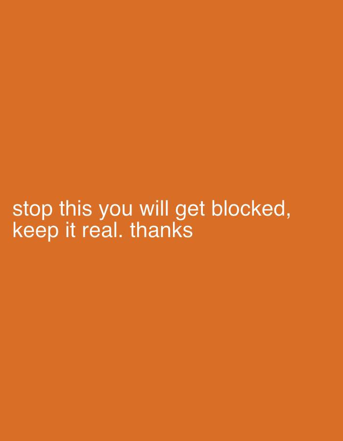 The scene, located in Umuode, Nigeria, consists of a solid orange background. White sans-serif text is displayed in the lower-left quadrant. The text reads: "stop this you will get blocked, keep it real. thanks". No other subjects, objects, people, actions, or environmental details are visible.
