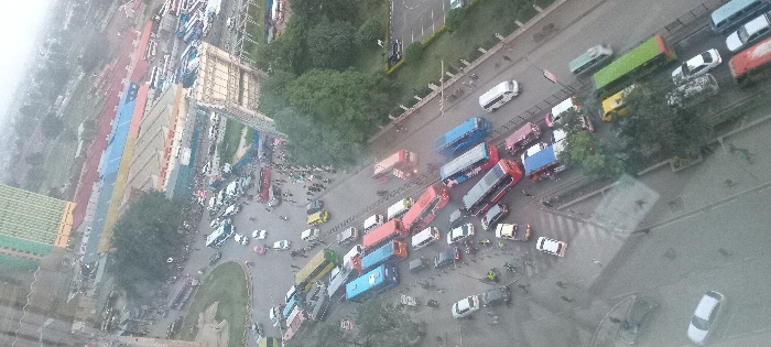 - "An elevated, tilted photograph captures a congested urban transport hub and its surrounding environment in Nairobi, Kenya" by FM-auFgD2, licensed under CC BY 4.0