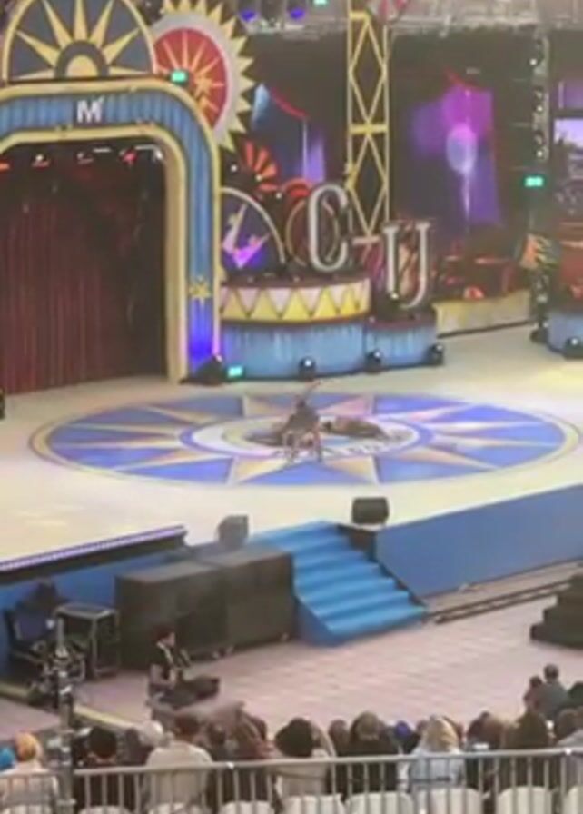 - "A woman in a green dress dances on a circular stage with a blue and gold compass-like design in front of an audience" by FM-33L543, licensed under CC BY 4.0