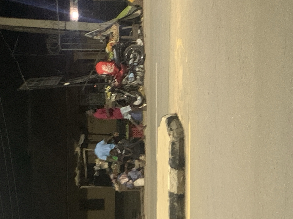 The image depicts a nighttime roadside scene in Zango-ndaji, Nigeria